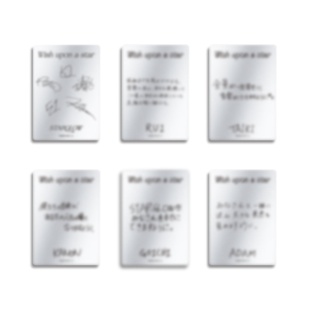 ソロバージョンの裏面には、STARGLOW DEBUT SHOWCASE『Wish upon a star』にちなんで、メンバーの現在の願いが直筆メッセージで印刷されています。