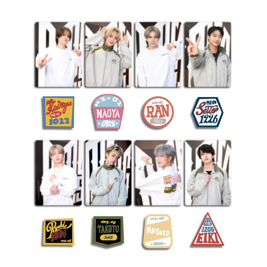 이번 콜라보 굿즈는 트랙재킷과 두툼한 롱 티셔츠를 입은 멤버들의 포토카드와 멤버별 패치 디자인이 그려진 스티커 2종 세트입니다.