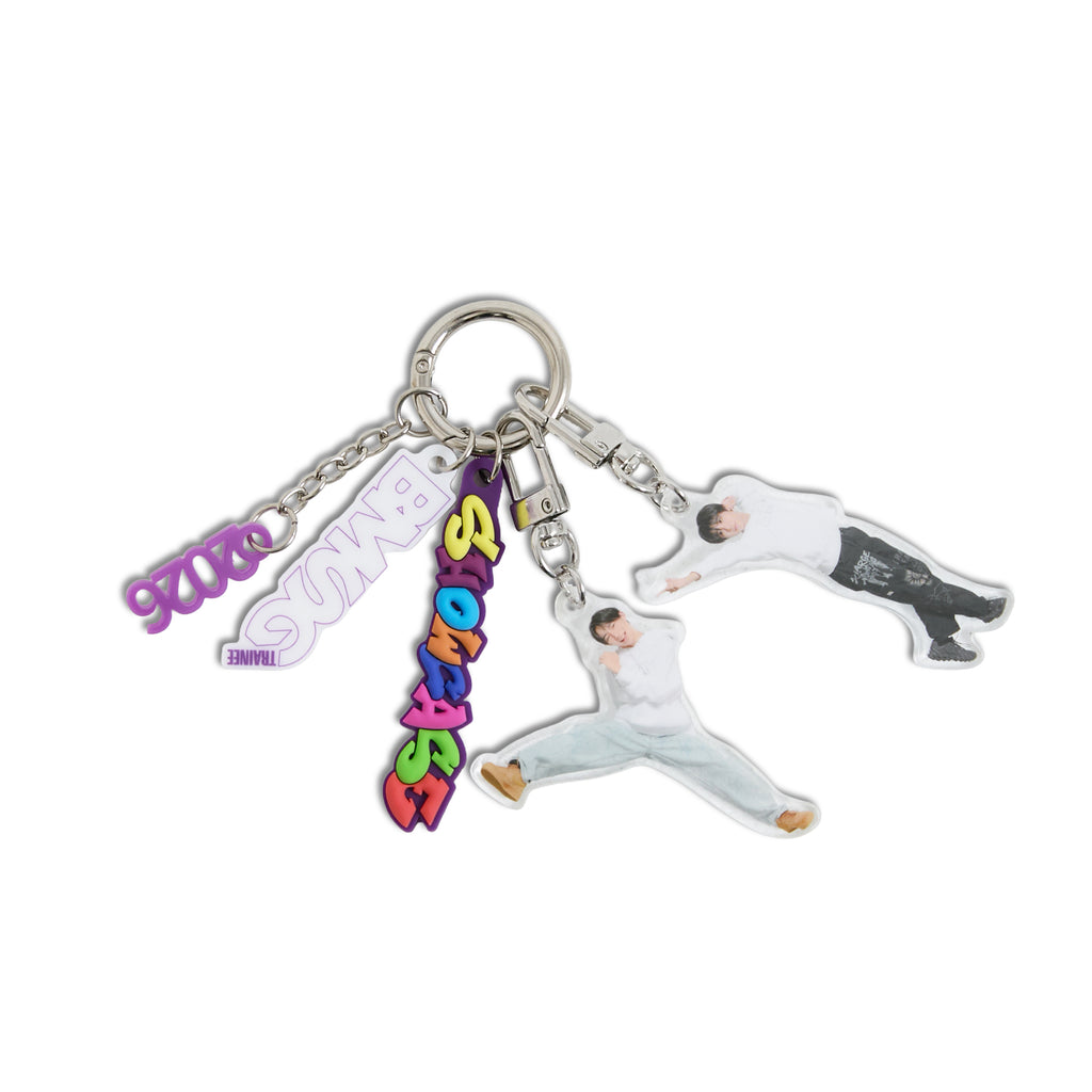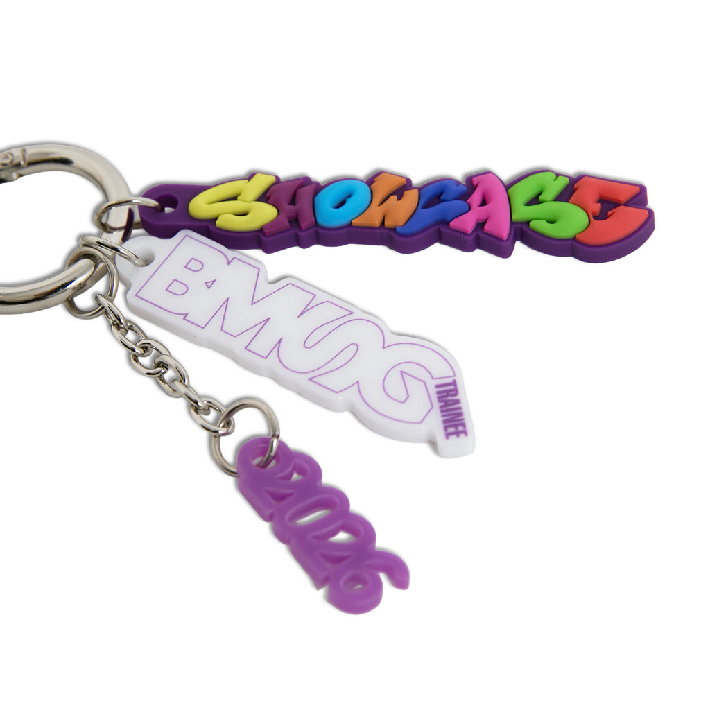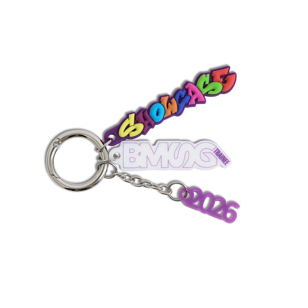 「BMSG TRAINEE SHOWCASE 2026」のロゴが入った公演開催記念のキーリングです。公演ロゴをラバーとアクリルで表現したユニークな仕上がりになりました。別売のフォトカードホルダーキーリングやランダムキーリングと一緒に付けてキーリングをより華やかに演出することもできます!