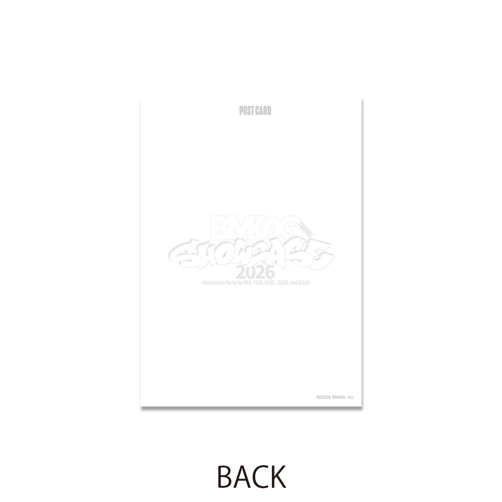 「BMSG TRAINEE SHOWCASE 2026 〜Graduation Party for REN, YUTA, RAIKI, TAICHI, and ISANA〜」の公演タイトルにもある通り、 3月で高校を卒業するREN、YUTA、RAIKI、TAICHI、ISANAの5人をお祝いする特別アイテムのポストカード6枚セットです。今の5人だからこそ見ることのできる撮り下ろしカットは必見です。ポストカードセットと一緒にメンバーの高校卒業をお祝いしましょう!