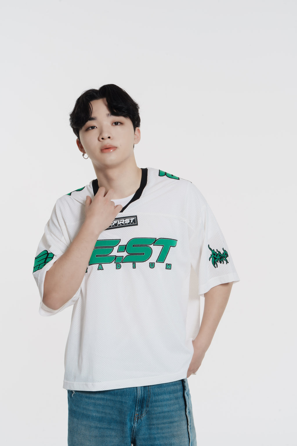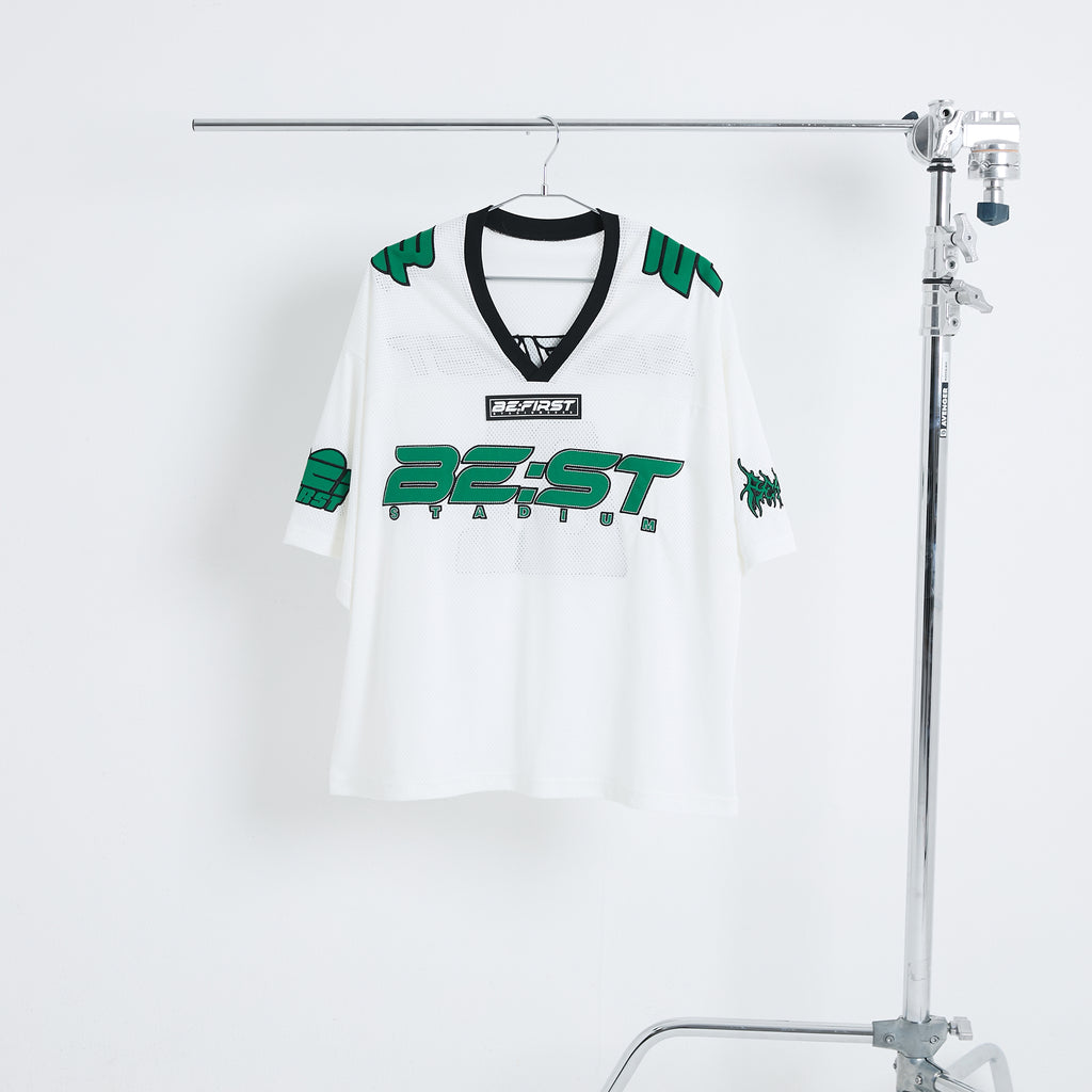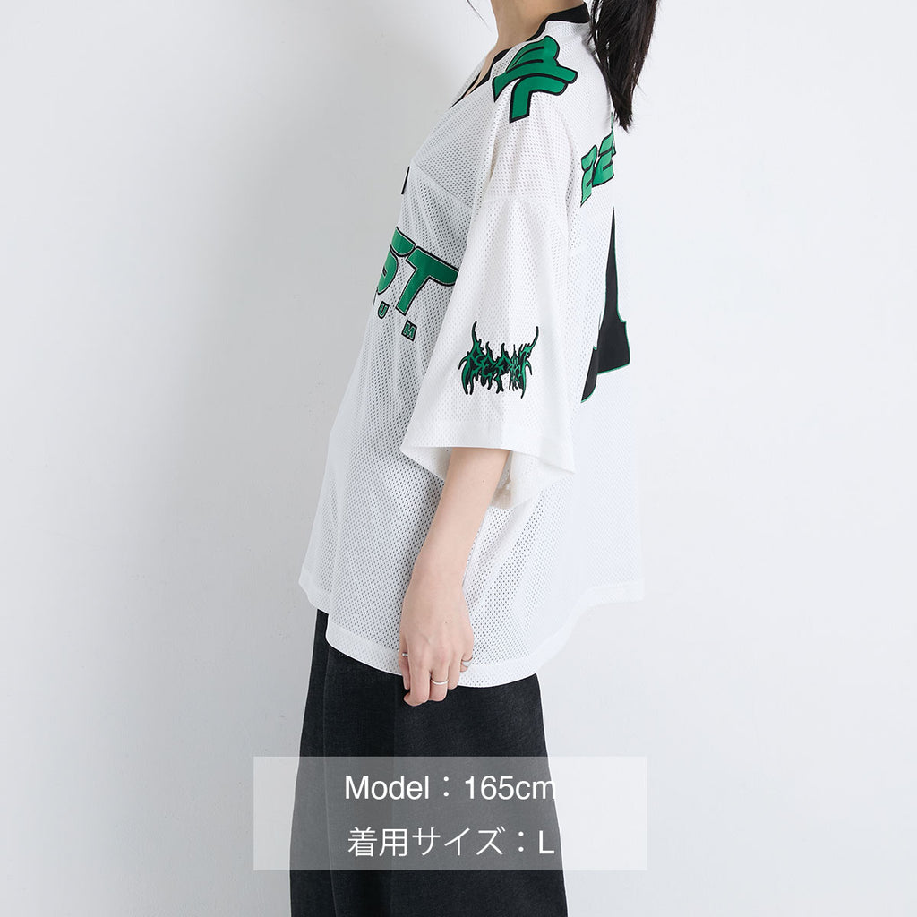 スポーツの定番でありながらストリート感も両立できるアイテム、メッシュゲームシャツメッシュ生地に刺繍ワッペンを縫い付け、胸元にはワンポイントでラバー素材のロゴを配置したこだわりのデザインです。