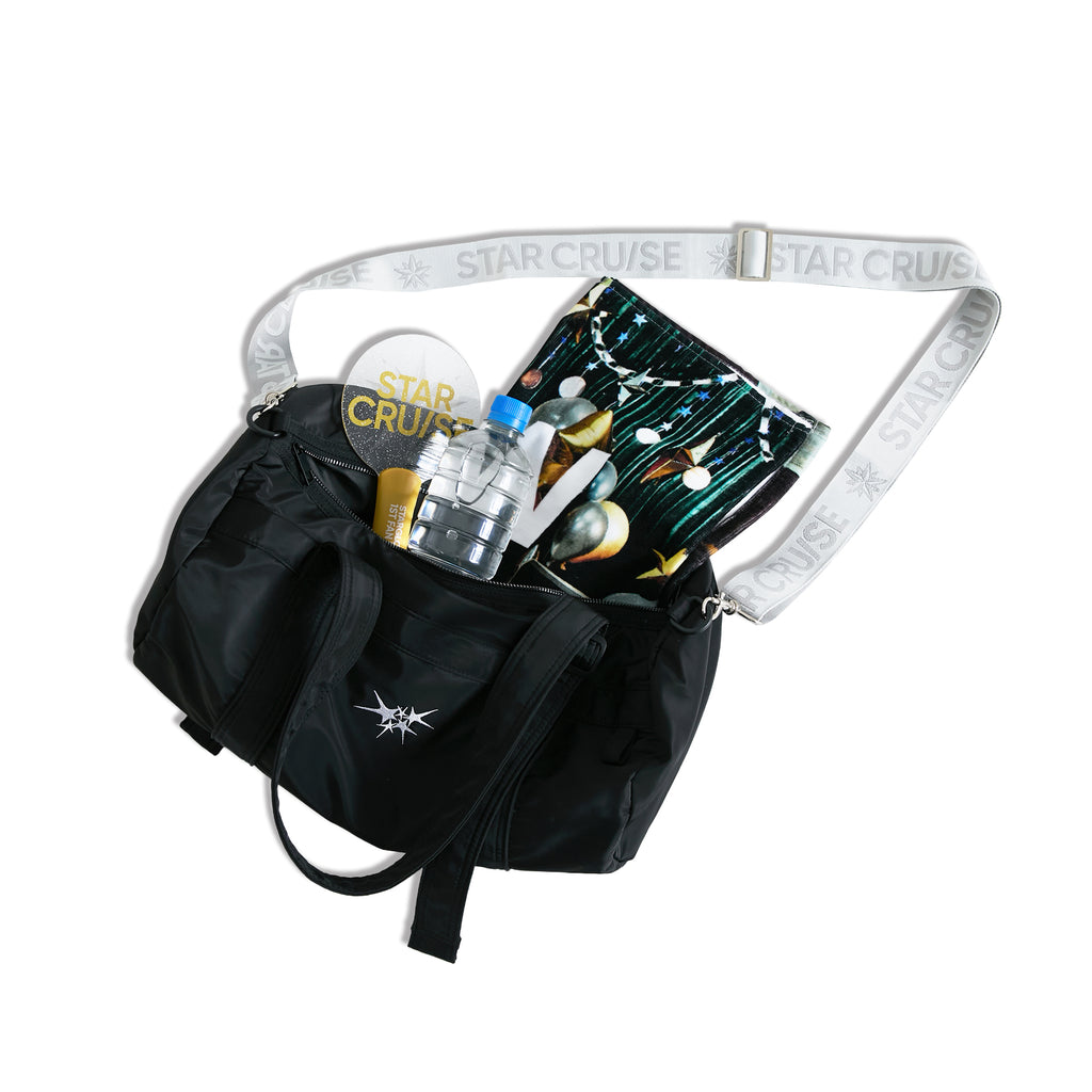 這款波士頓包可輕鬆搭配任何風格。正面繡有五顆星聚集在一起的標誌,背面貼有“STAR CRUISE”標誌標籤。手柄的長度可以調節,因此您可以手提或肩背!這是一款非常實用的物品,還設有一個內袋,並且可以使用可選的多肩帶作為單肩包使用。